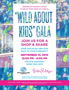 Join Boys & Girls Clubs of Miami-Dade as we gear up for our 9th Annual “Wild About Kids” Gala! Head out to the brand new Lilly Pulitzer at The Village of Merrick Park in Coral Gables, FL on September 13, 2015 from 12 p.m. to 6 p.m. to shop for a cause. A portion of the day’s proceeds will benefit Boys & Girls Clubs of Miami-Dade.